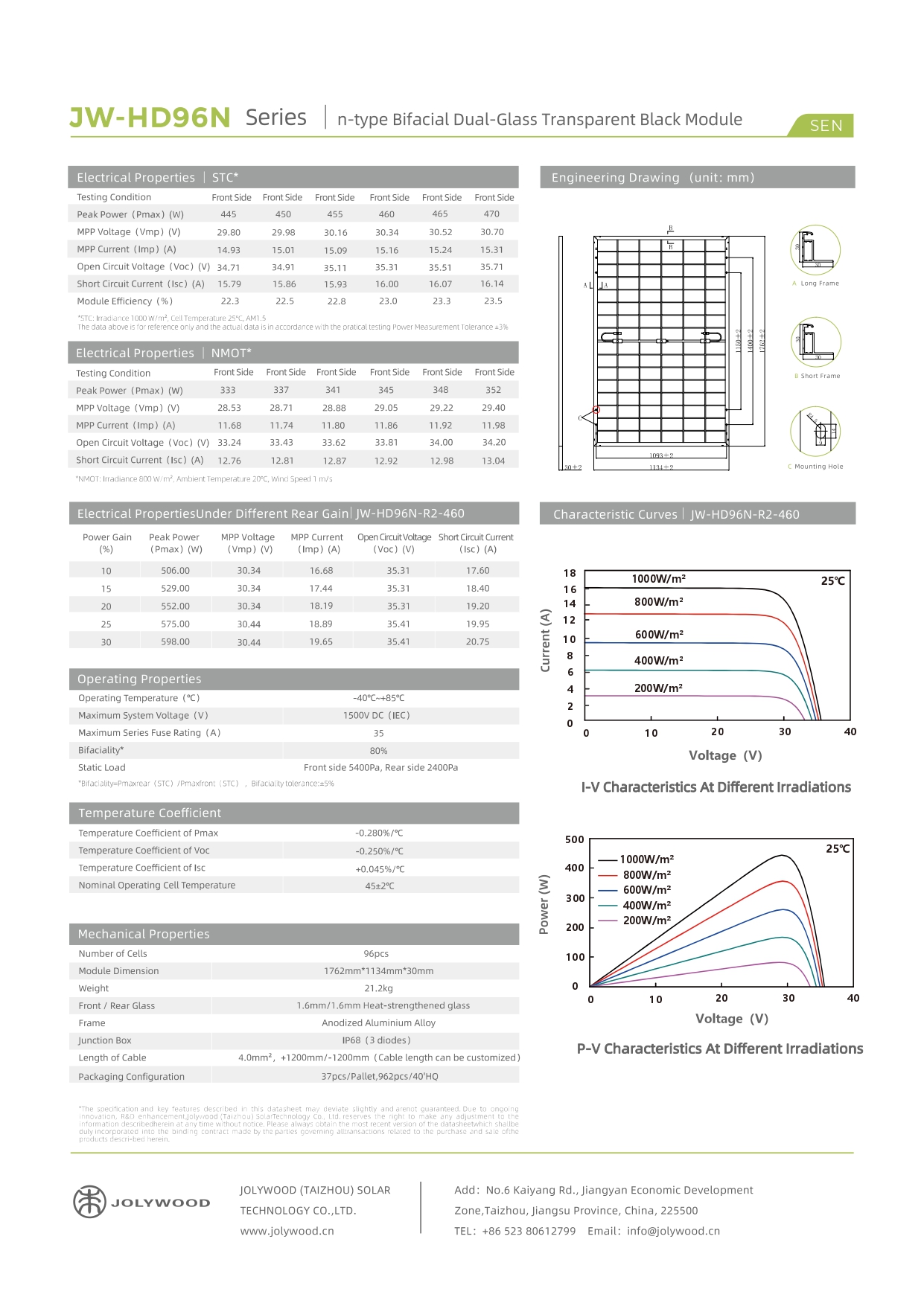 Panel fotowoltaiczny Jolywood 450W JW-HD96N-R2 Bifacial